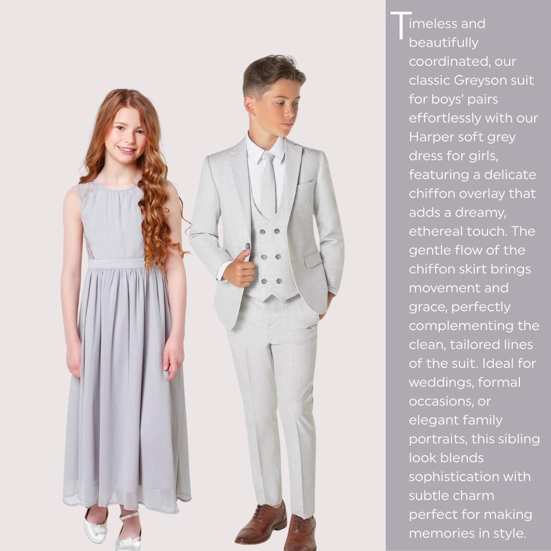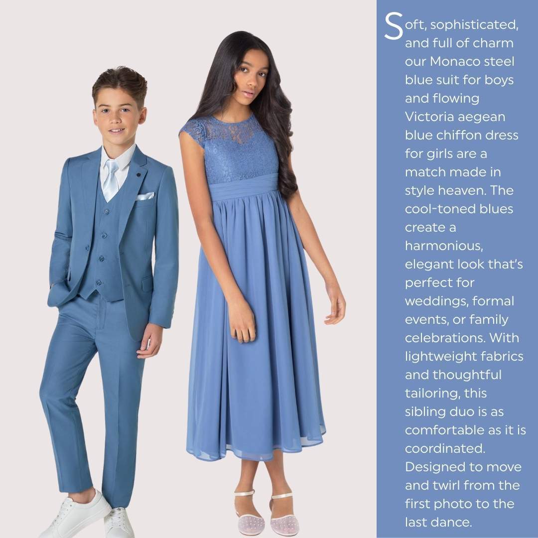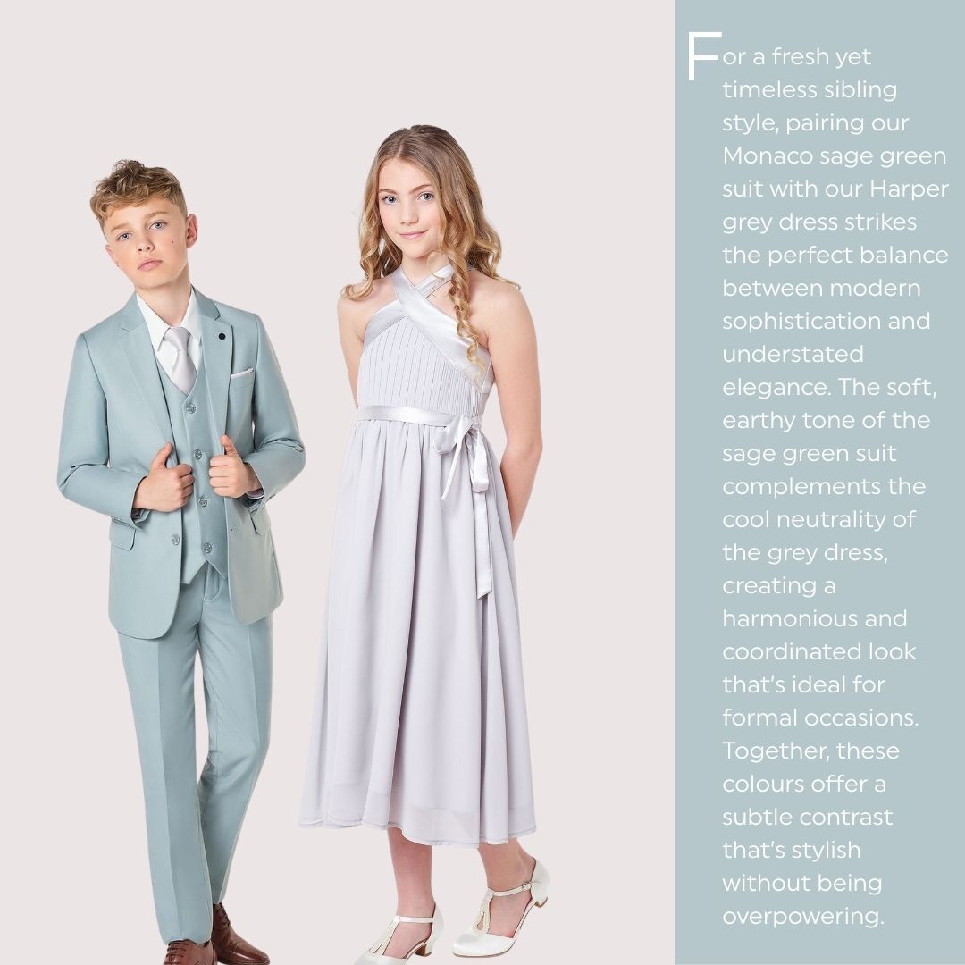 The Dress Up Sibling Style: How to create matching looks Coordinated looks General Sibling style Style Dressing up for special occasions is always exciting, but when siblings get to coordinate their outfits, it takes the joy (and the cuteness!) to a whole new level. Whether it’s a wedding, christening, birthday party, or holiday gathering, coordinated looks for brothers and sisters add a polished, picture-perfect touch to the day and help create memories that last a lifetime. We believe in celebrating those once-in-a-childhood moments with style and a touch of magic. Our coordinated sibling styled outfits are thoughtfully designed to blend timeless elegance with playful details, so your little ones feel as fabulous as they look. Why We Love Coordinated Sibling Looks Effortless PhotosMatching or complementary outfits instantly elevate family photos. From soft pastels to classic neutrals, coordinated colours and fabrics create a harmonious look that’s beautiful on camera and even better in albums for years to come. Individual Style, Shared AestheticOur occasion wear collections are crafted to work beautifully together while still allowing each child to shine. A floral print dress for her might share the same palette as his tailored waistcoat and trousers so they match, without being too matchy. Strengthening the Sibling BondThere’s something undeniably heartwarming about siblings getting ready together in matching or coordinating outfits. It builds a sense of team spirit and togetherness, plus, it often brings out their sweetest sides (at least for the photos!). Styling Tips for Sibling Occasion wear Choose a Colour Theme: Soft blues, blush pinks, sage greens, navy and creams are always classic choices. Pick a main colour and echo it across different pieces. Mix Textures and Layers: Pair cotton with lace, tulle with linen, or tweed suits for cooler weather. Mixing textures adds depth while keeping the look cohesive. Add Matching Accessories: Bowties, pocket squares, or suspenders are fun finishing touches that pull the look together without overdoing it. Keep Comfort in Mind: Prioritise soft fabrics and thoughtful tailoring to ensure your little ones feel comfortable from the first photo to the last dance. From twirling skirts to bow ties, coordinated sibling outfits bring a little extra joy to life’s most treasured moments. Whether you’re planning outfits for flower girls and page boys or dressing up for a festive family celebration, our occasion wear collections are here to help you style memories that feel as beautiful as they look. SHOP GIRLS DRESSES SHOP BOYS SUITS Coordinated looks General Sibling style Style